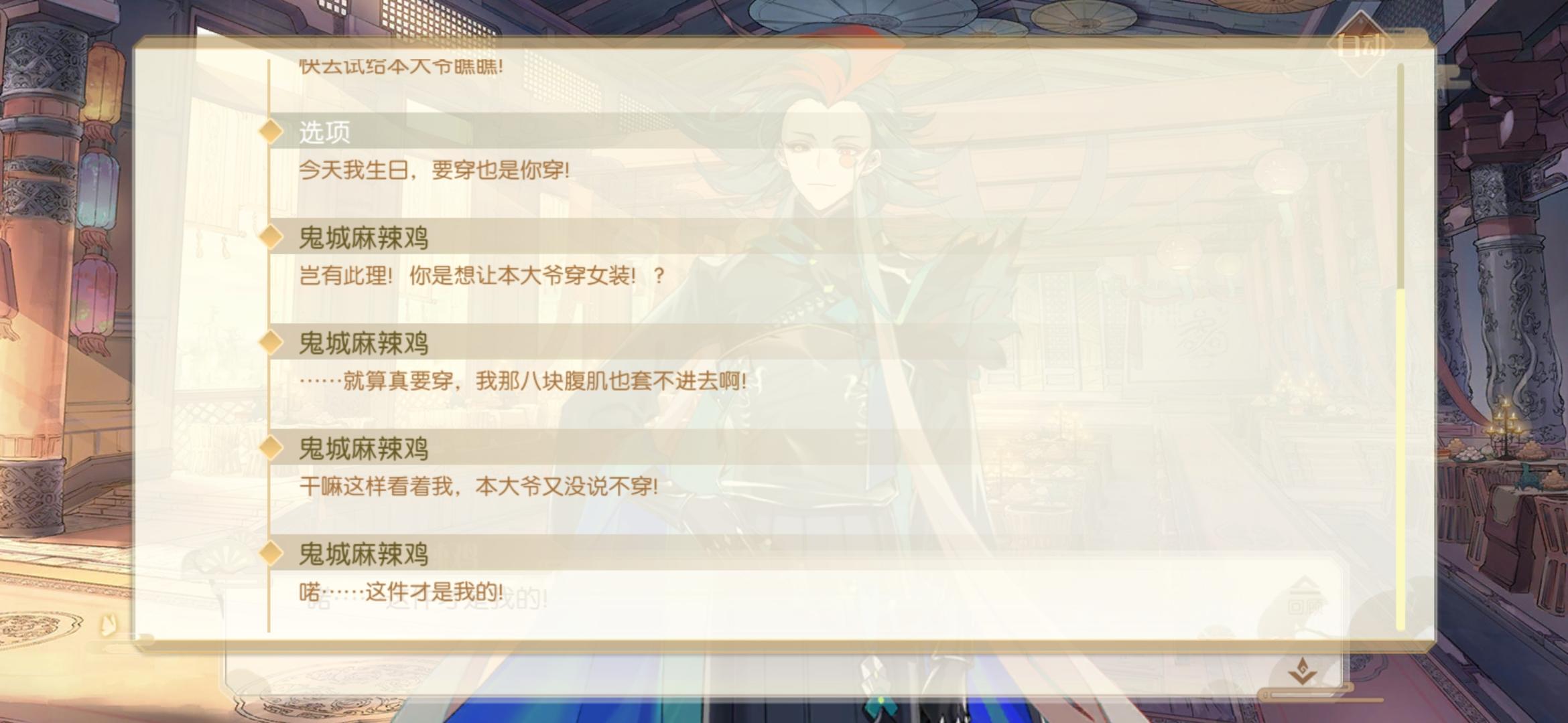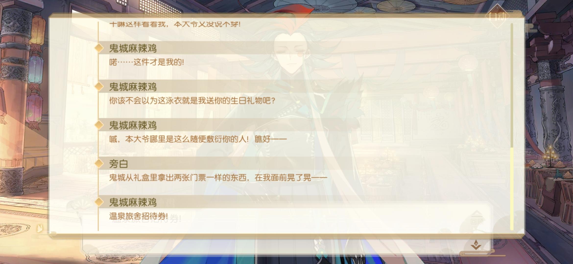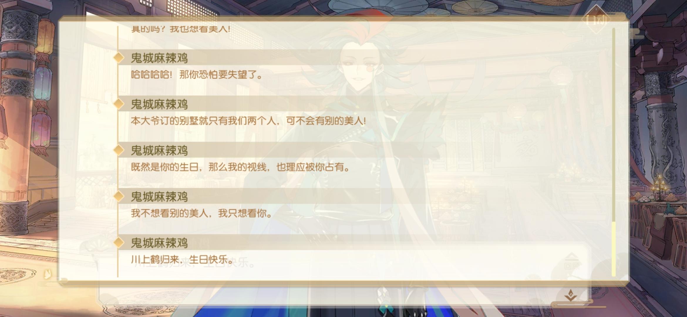 我想知道各位姐妹食魂送的生日礼物是啥,我的是麻辣鸡送的鬼城麻辣鸡画卷。这个麻辣鸡该死的撩人。