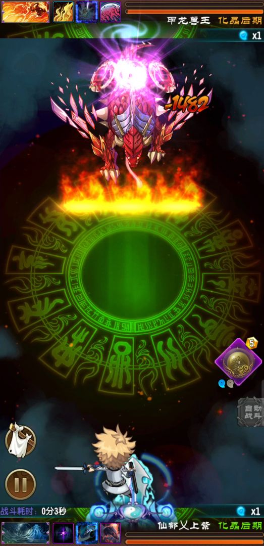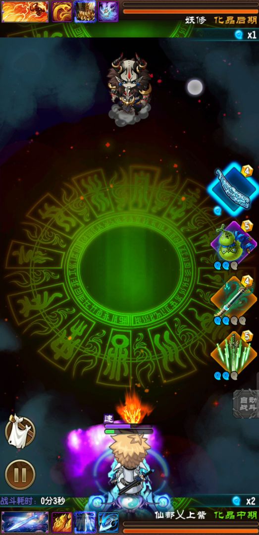 ⑦【震荡出奇效】难度★★★条件:获胜 具体操作:6s右弹道释放葫芦,11s右弹道释放噬魂锤,然后左边释放棍子,快打到冻住,22s释放九月子母剑。