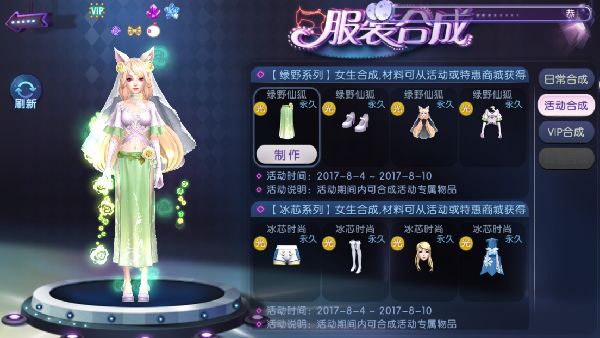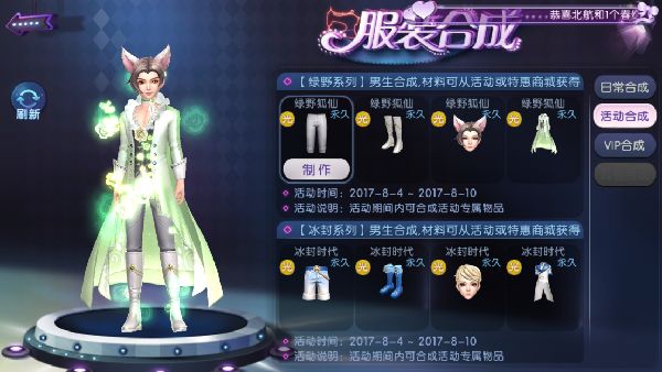 这次梦幻运动会还为女生带来了更多想象色彩:绿野系列套装融合了更多童话元素,穿上这套服饰,仿佛就能拥有一个少女心的夏日!戴上可爱的猫耳朵和飘逸的头纱,公主袖的白色上衣,配上半透明的浅绿长裙,穿上绿野系列套装的AU玩家就是漂亮的小仙女!