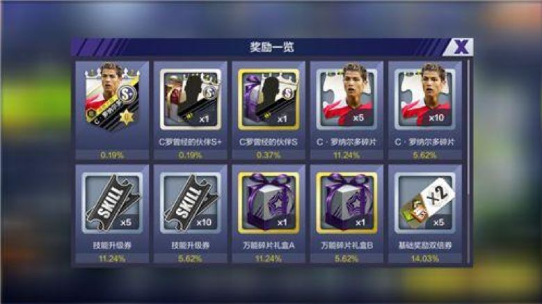 《全民冠军足球》对游戏随机玩法中物品产出概率公布如下: