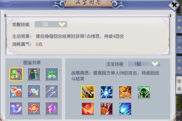 2、人物等级到达一定等级后,可开启法宝槽,最多可同时佩戴6个法宝