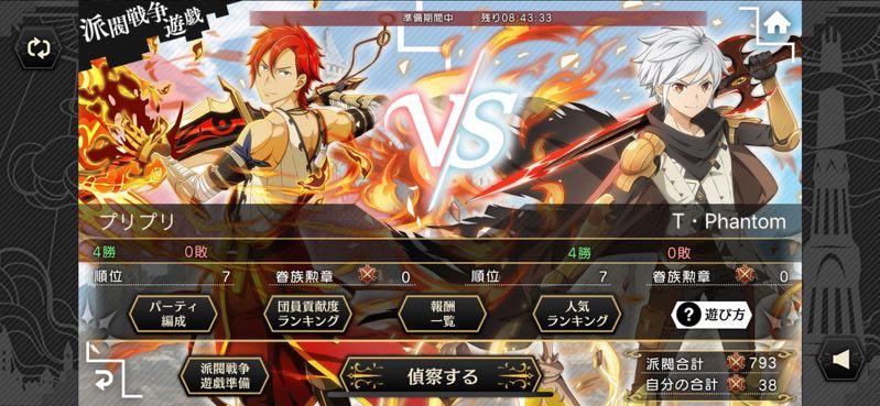 在刚刚过去的派阀战争游戏倒数第二天,我们碰到了与我们同分同排名的另一个公会プリプリ