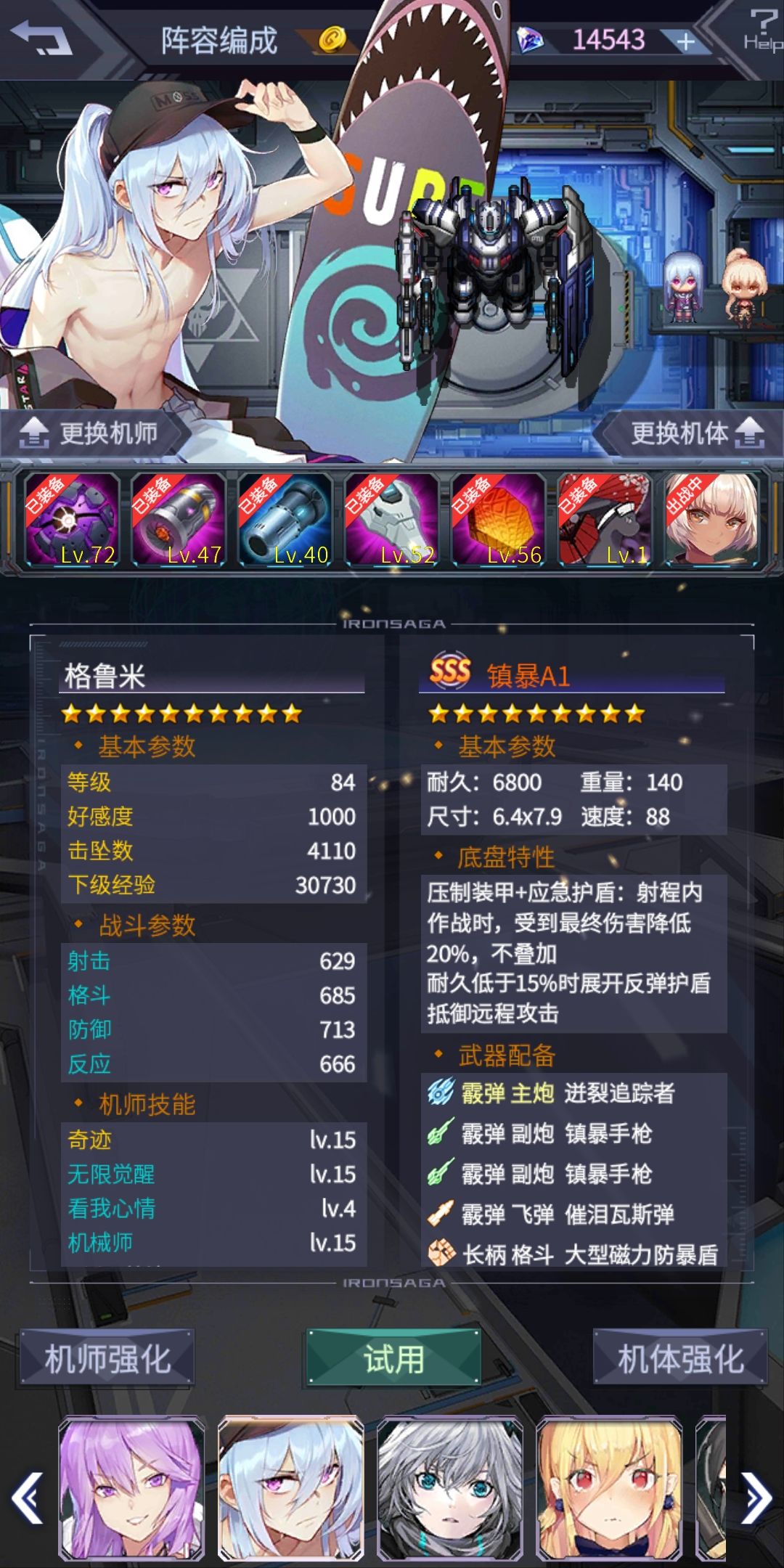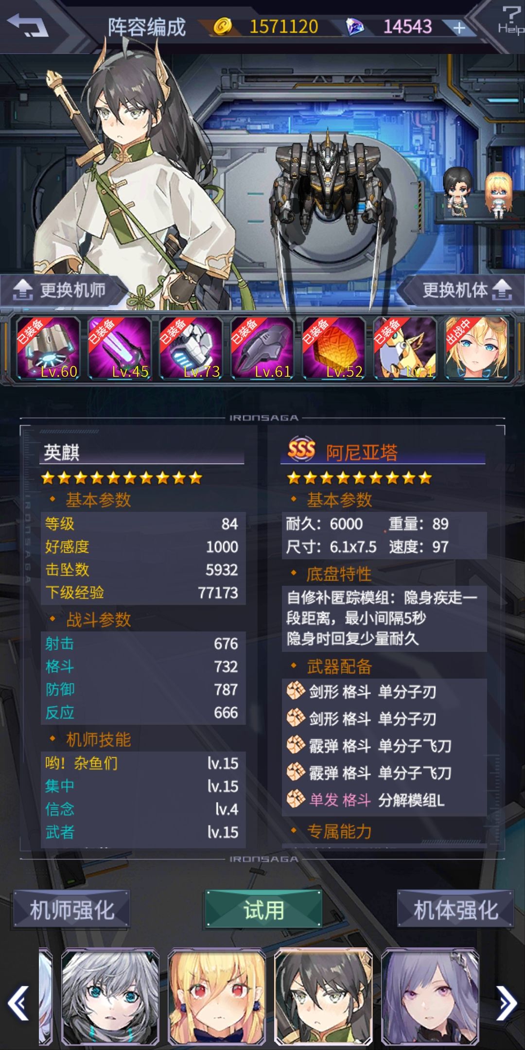 记录一下通关阵容 除了一台六星梦耶外都是平民机 给新玩家建议 钻石留着买皮肤 除非遇到特别喜欢的机器 不要轻易尝试十连 合理搭配和提高练度虽然达不到py队的水平 过剧情和活动还是有机会的 希望能给喜欢剧情的朋友一些帮助