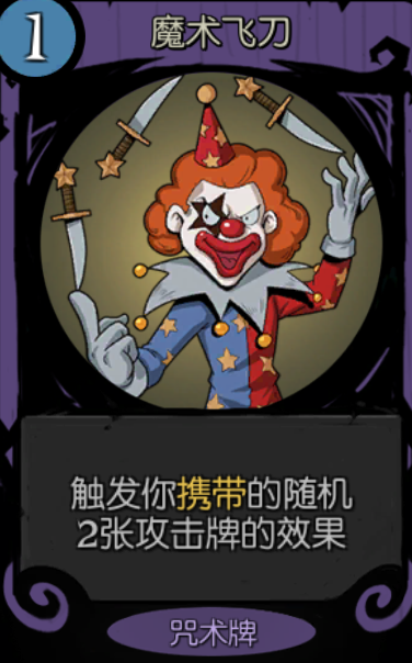 而且看清楚,魔术飞刀是触发而不是使用,所以魔术飞刀,鬼牌,悬浮,没错,就是你想的那样。到这里可能还是有人不明白这有什么意义?首先,诡计就十五金币,让你前期有巨额金币去找贵牌,其次,诡计,魔术飞刀魔术师基本两局有一局会在第一章出现,容易让非酋成型,成型后配一些过牌牌和增益牌轻松过第二章中期(6级以下的怪就是被吊打),最后,它不吃其它祝福增益!!!