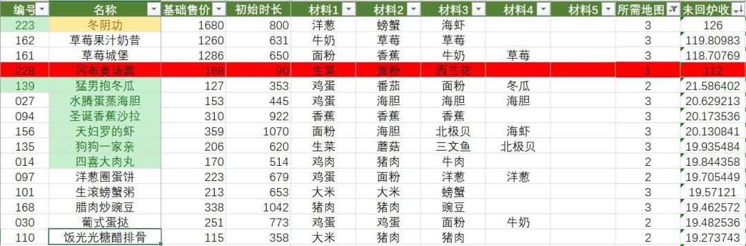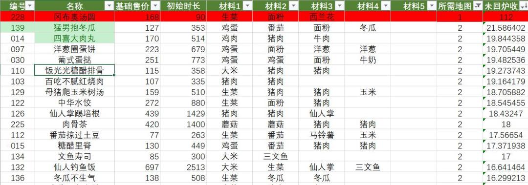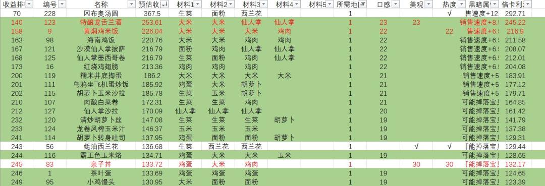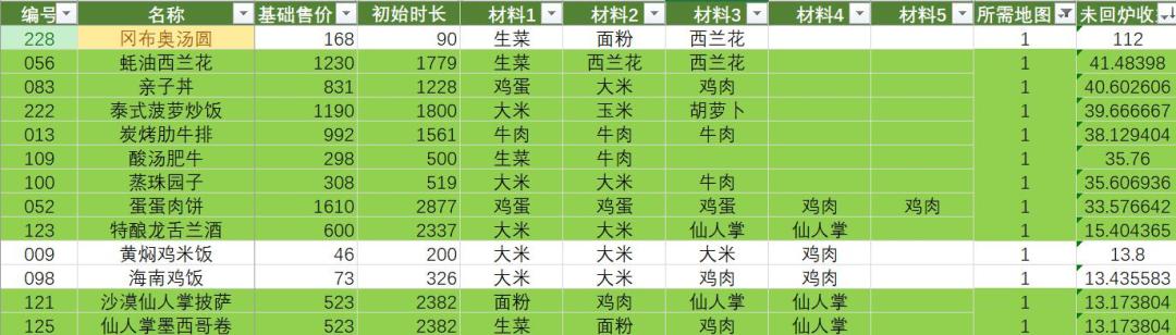 (回炉的收益和其他图的菜谱:【菜谱收益排行】20191115更新2.2.0,可查询、排序、自定义by惊魂之蛙#57313 链接:https://www.taptap.com/topic/7261484)