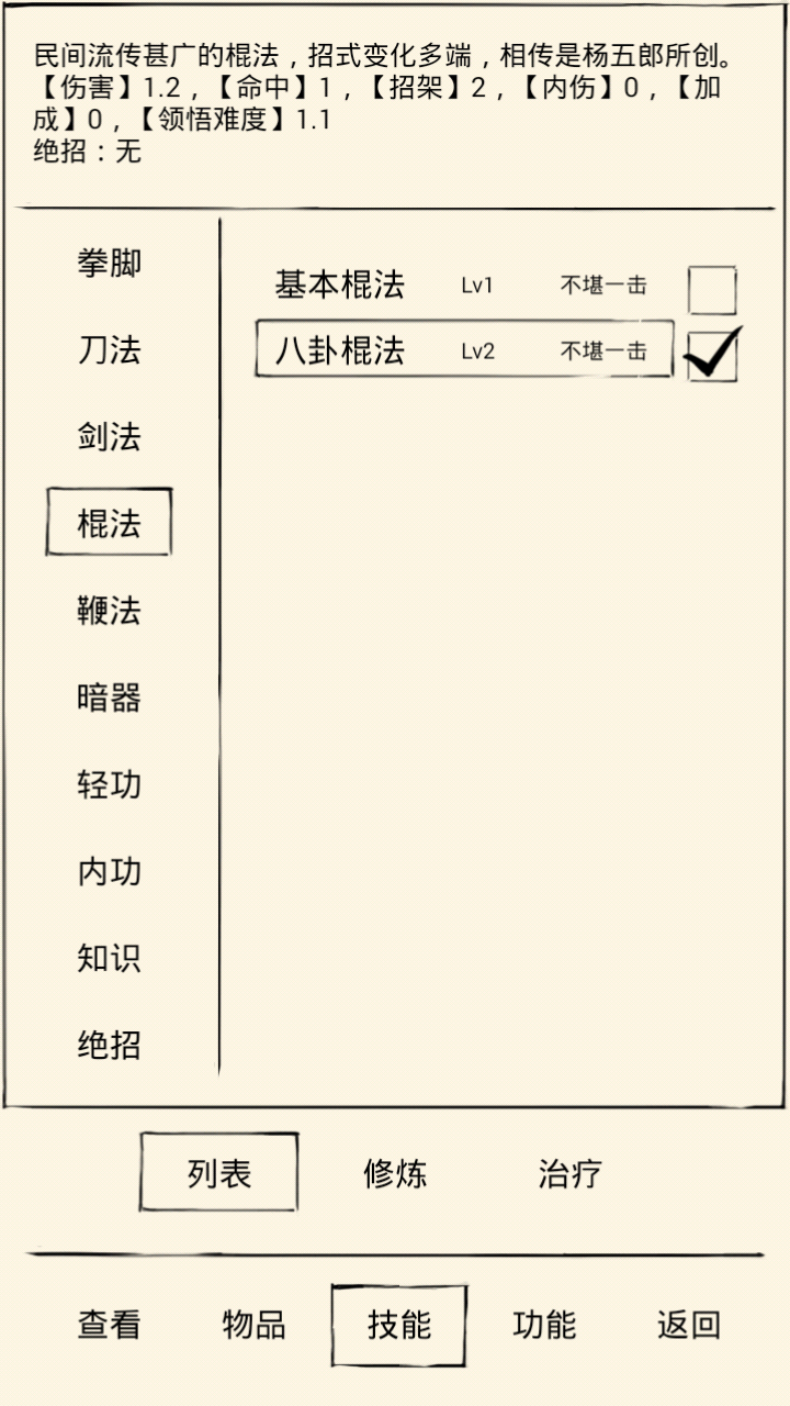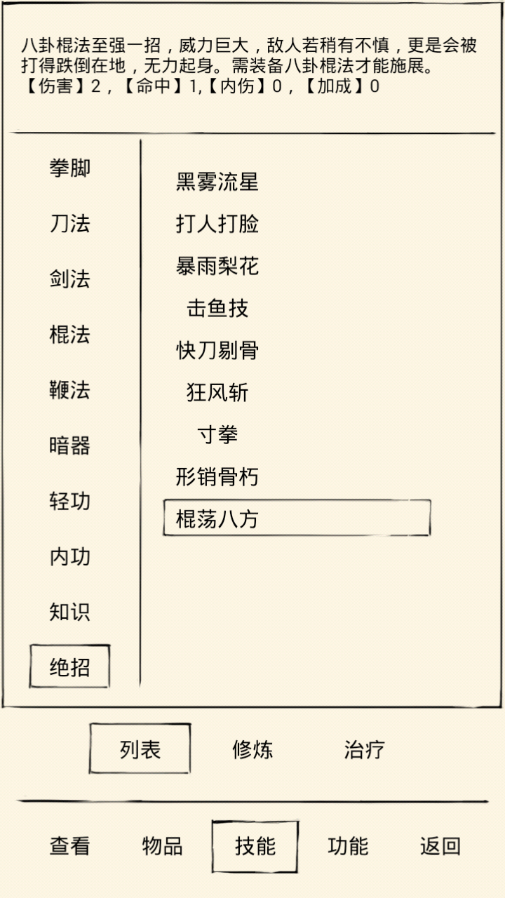 八卦棍法钓鱼的漂流瓶获得,绝招是闭关奇遇获得,这绝招获得也许是看运气的,运气不好可能很长时间都没有绝招用
