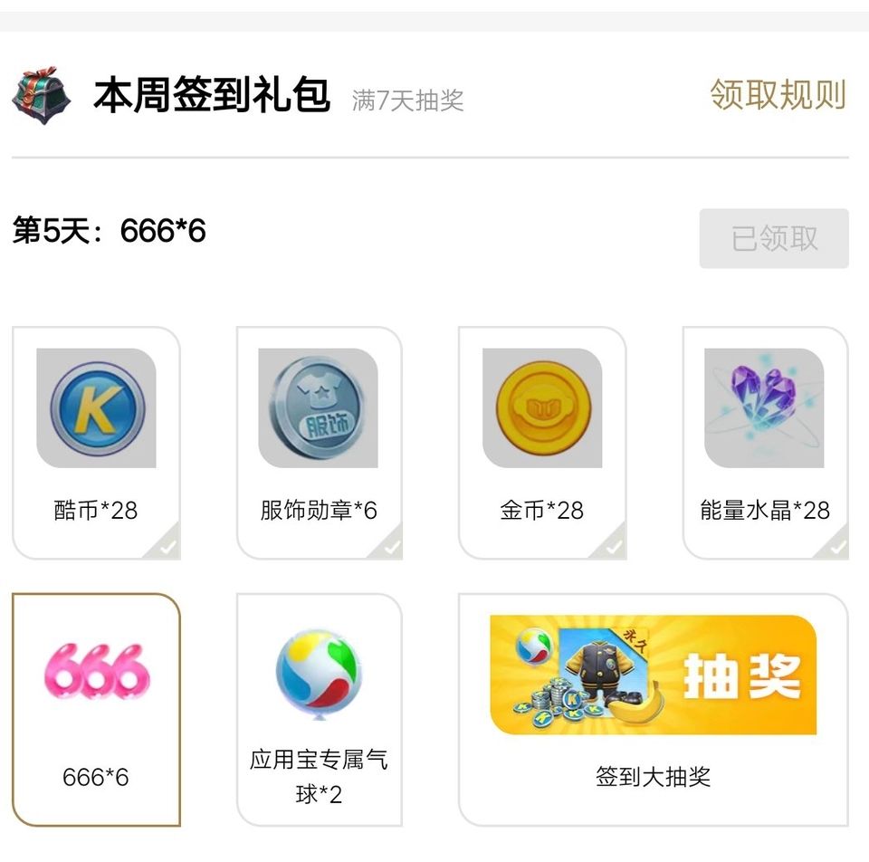 周末两天每天五把排位获得2*300=600酷币