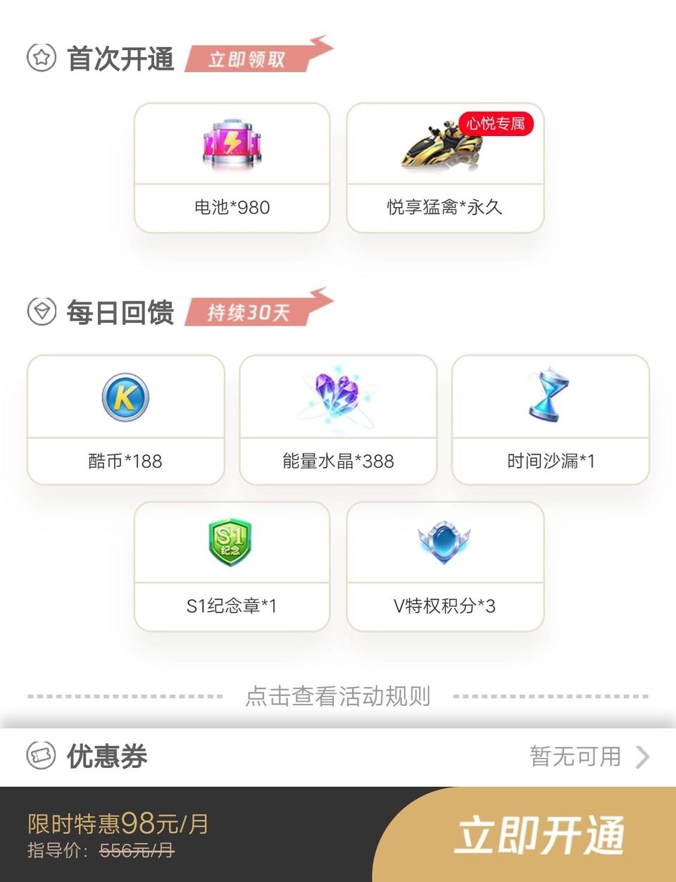 最后是每个月必出一次的杯王争霸,2800酷币,平均每周650酷币。