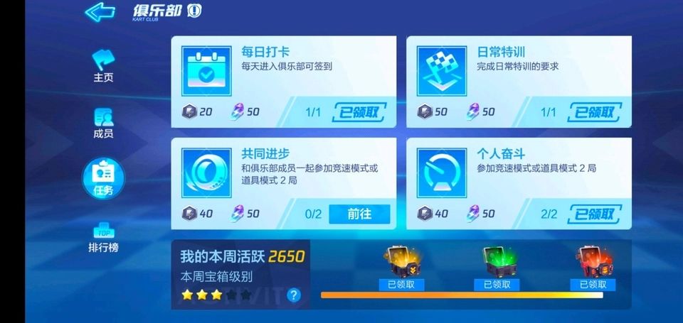 游戏内的收入:弯道任务2×700=1400,俱乐部每周活跃宝箱50+100+200=350(最低级的俱乐部),周签2×50=100,周末第二天登录100,氮气任务每周必有,100,VIP每周礼包,微氪算V3(累充50)每周88,周末两天晚上在线2×500=1000,每周一更新,补偿88酷币,周三还有个领酷币的活动,忘记多少了,欢迎补充,总计3226酷币,白嫖党少88酷币,总计3138酷币。