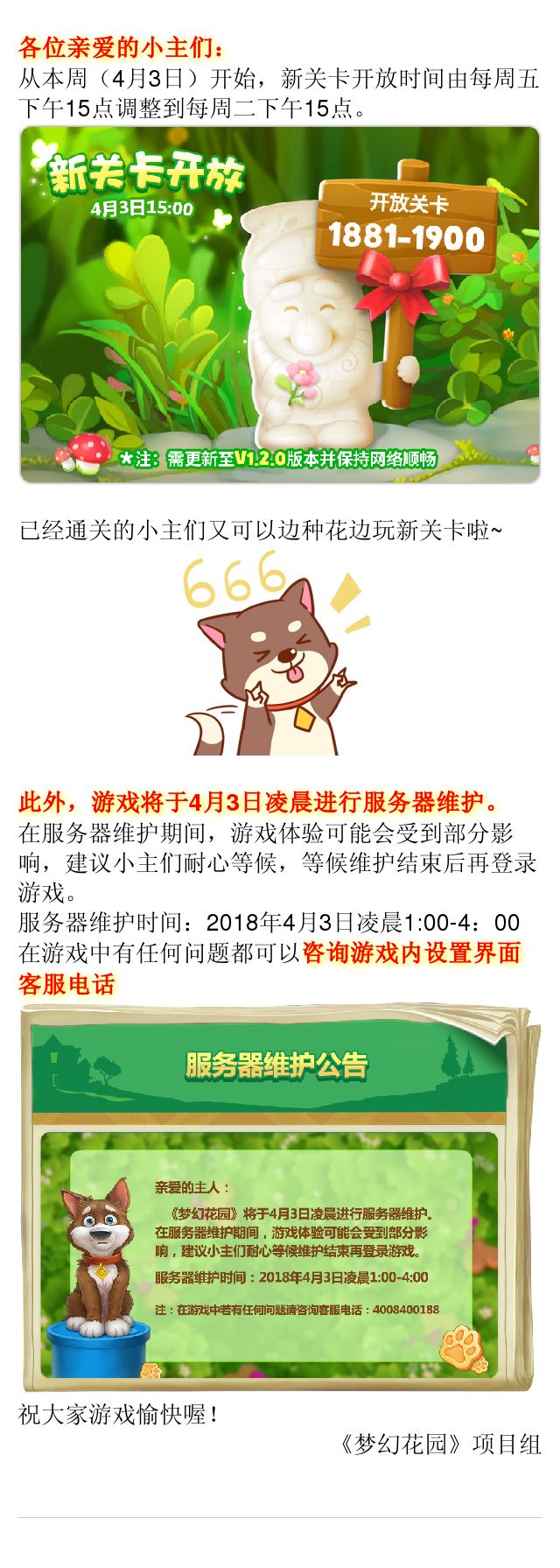 【公告】新关卡开放时间调整及服务器维护通知