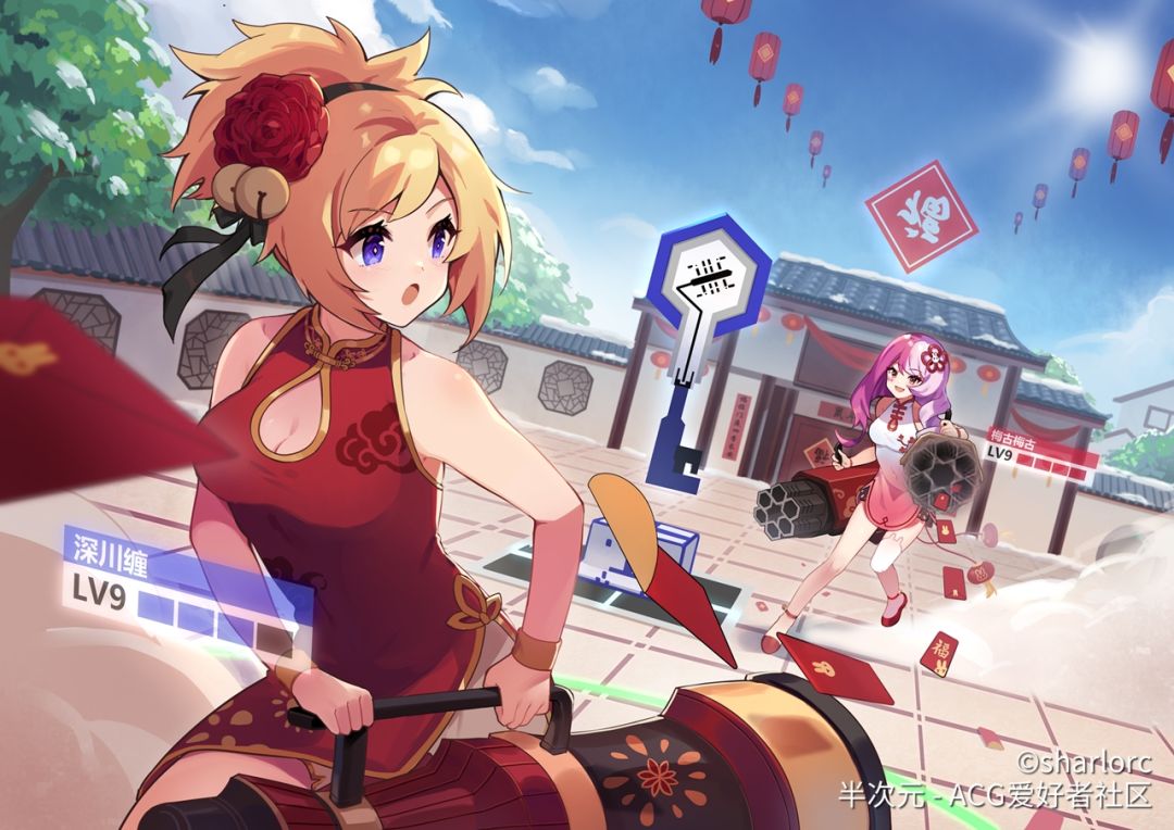 “画了旗袍小缠和梅古梅古的对战~祝春节快乐!”
