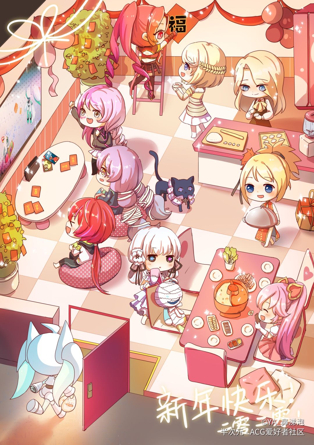 “小姐姐们好可爱> < 画一下大家聚会的时候的样子~ 提前祝大家新春快乐~ ”