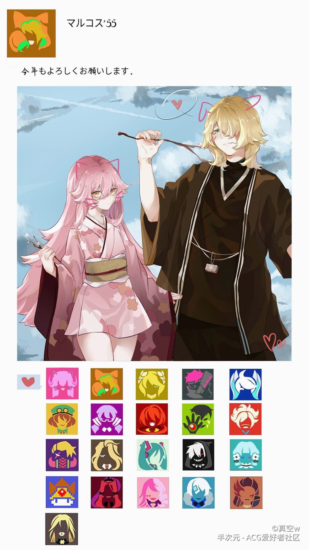 “画了13和可可给大家拜年!希望新一年都能抽到想要的角色 و✧”