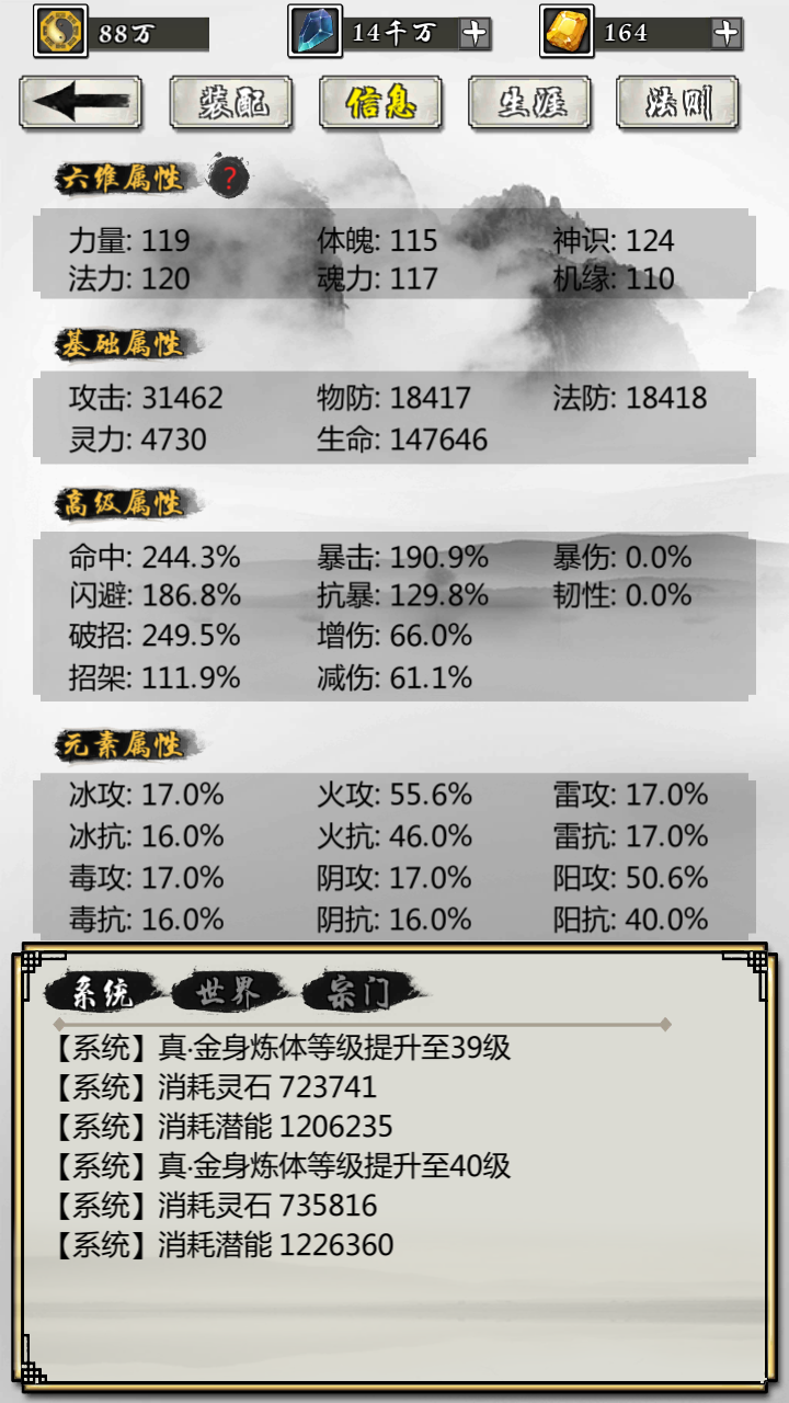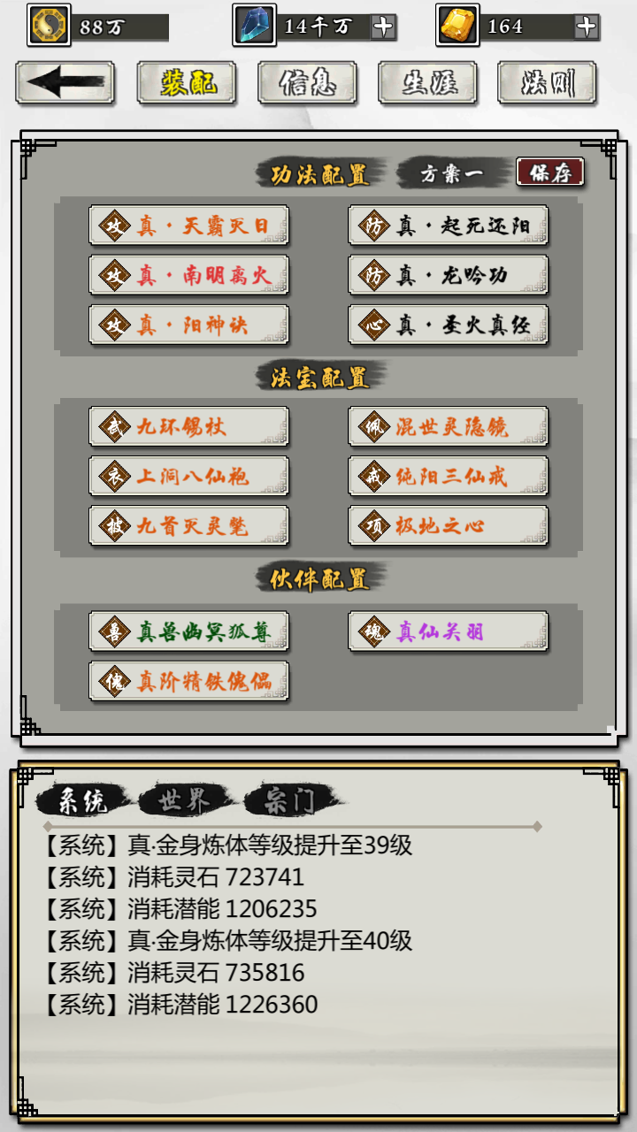 大佬们,目前境界是真仙初期(370好像),打人,圣地,秘境,仙魔录完全打不过啊,只能打赢天仙巅峰的,而且胜率也不高。是我属性太低了吗?可是能升的大多都升级了,剩下一堆冰抗啊,阳抗啊,之类的。还有什么能提高攻击力的吗?或者技能搭配,伙伴搭配的。哦,对了,我是昆仑的。现在不太敢升中期。大佬们,我该怎么办?