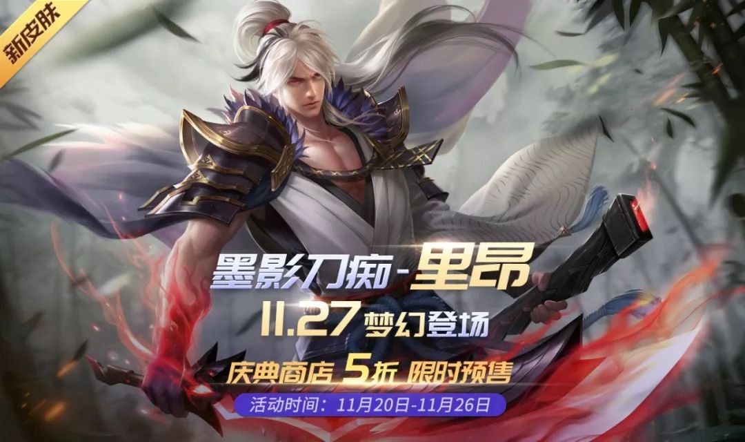 全新梦幻皮肤墨影刀痴-里昂11月27日梦幻登场。11.20更新后,可在庆典商店5折限量预购和四周年定制版战斗手册获得梦幻碎片。梦幻碎片用于11.27兑换传说或梦幻皮肤。