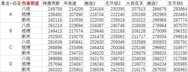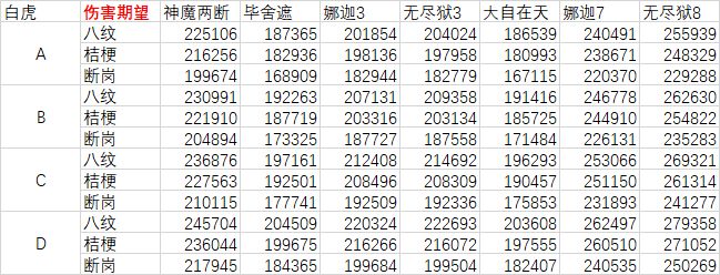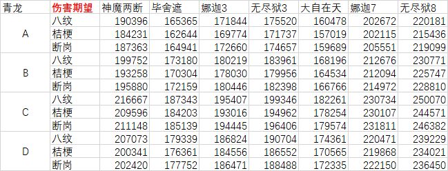 表中没有提及各套的其他属性问题,实际上青龙和白虎的暴击率转化机制只是补偿,别去刻意堆暴击,举个例子,白虎D套的非暴伤200%,这种情况下背景值极高,自然暴击转非暴伤收益低了,同理适用于青龙