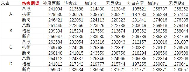 2019.7.10提醒,正式服听说改了各套数据(听说朱雀被削惨了),故此数据仅做参考