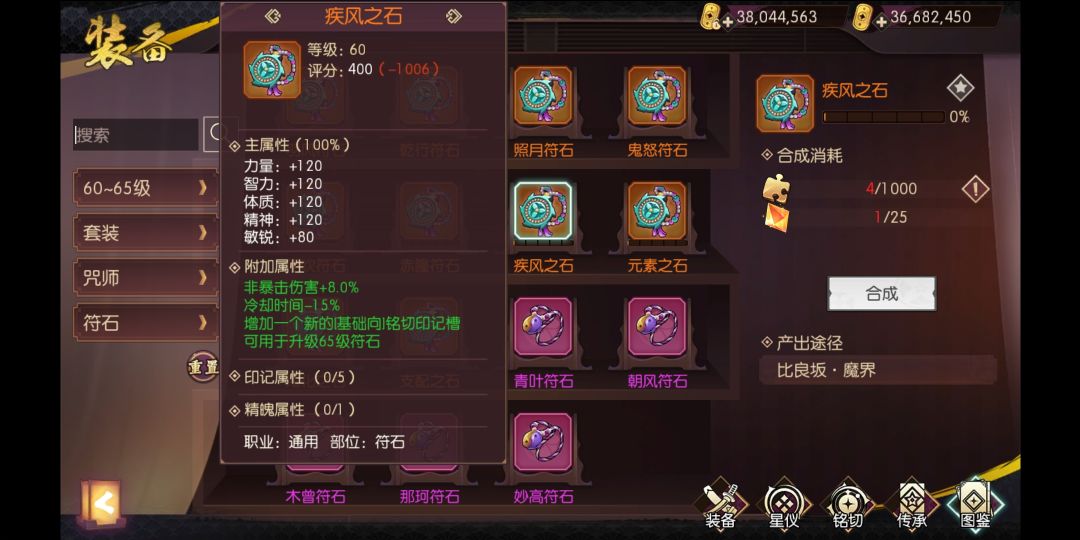 3. 装备条件为15+14套咒师,表里的桔梗断岗八纹实际上是60版本的那个,习惯问题还是写成55的名字
