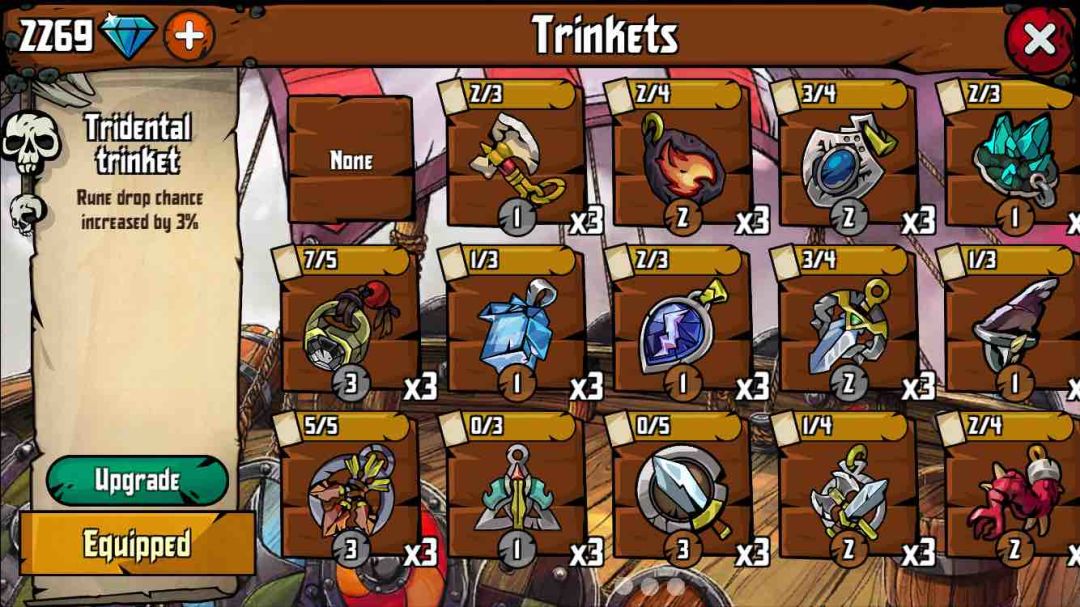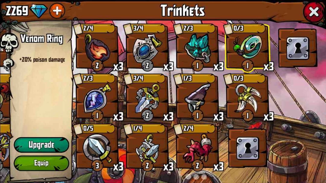 目前收集到的武器和饰品一览。还差三个任务的没刷齐。