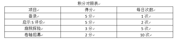 活动期间,引导者每天可通过登录、招募、探险、启示行为获得积分,积分可用于抽奖,奖励内容包含:10000金币、潜能药水*1、幻光摆件*1、精炼莎华石*1(可赠送英雄增加好感度)、时光卷轴*200、瑟瓦*200、同心灵石*1。