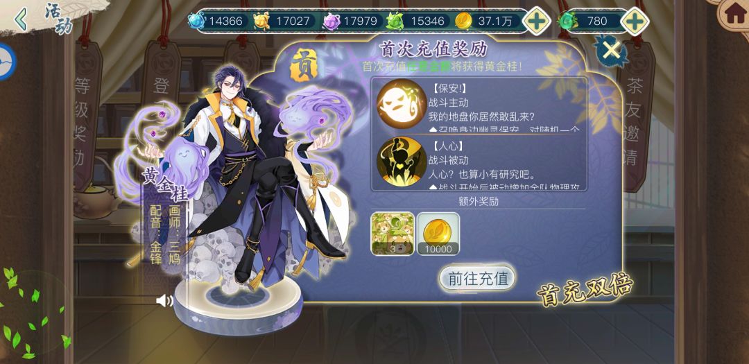 活动内容:首次充值6元送贡级黄金桂,并且还可额外获得肥木兽·群*3和10000金币