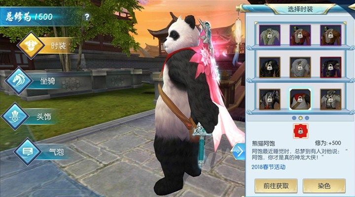 熊猫阿饱时装不仅看上去呆萌可爱,还可以增加玩家500点的修为,所以许多玩家都想要获得这款时装。但是这件时装是非卖品我们只能通过2018年的春节活动才能够获取,目前来说没有获得这件时装的玩家已经没有途径去获得了,但是大家不要遗憾,这么萌的外装我相信在以后的活动中肯定还是会有机会重新出现的。