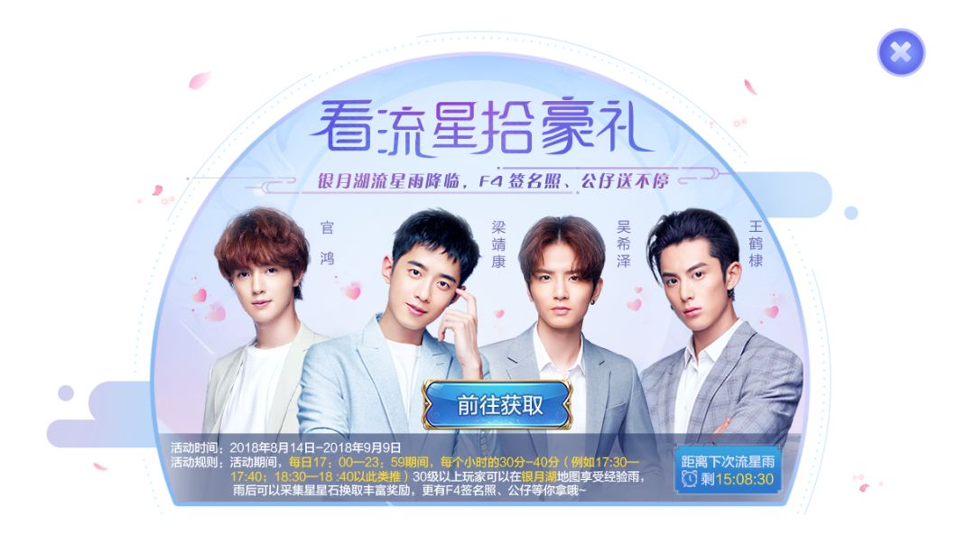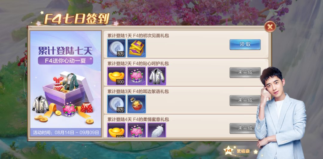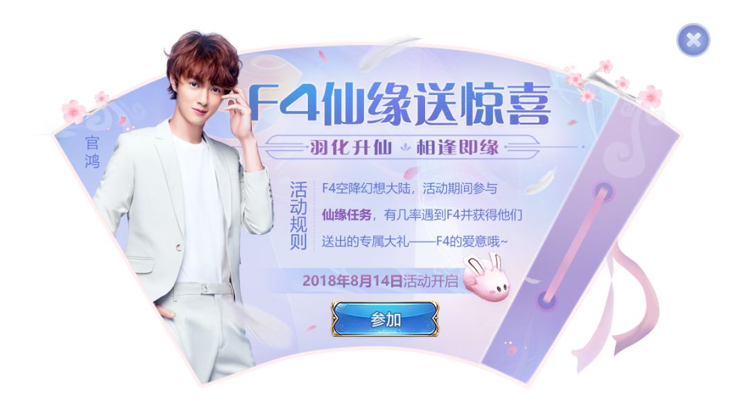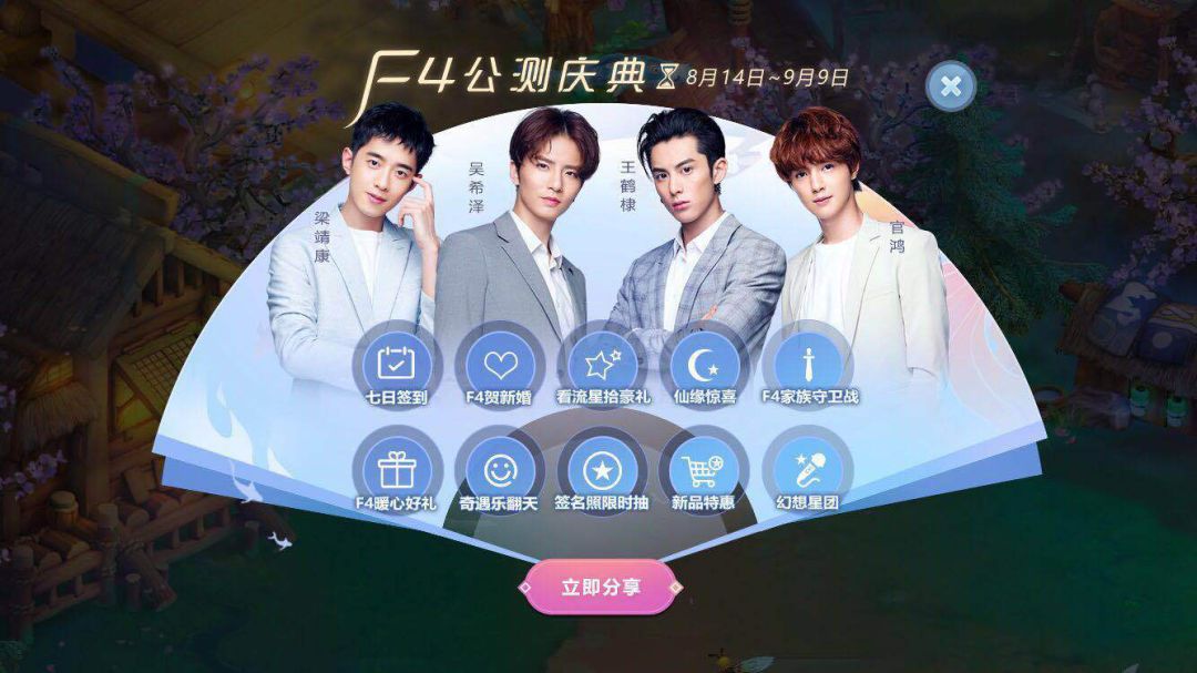在活动期间完成F4专属仙缘任务,会获得更多奖励哟~亲密度upup!