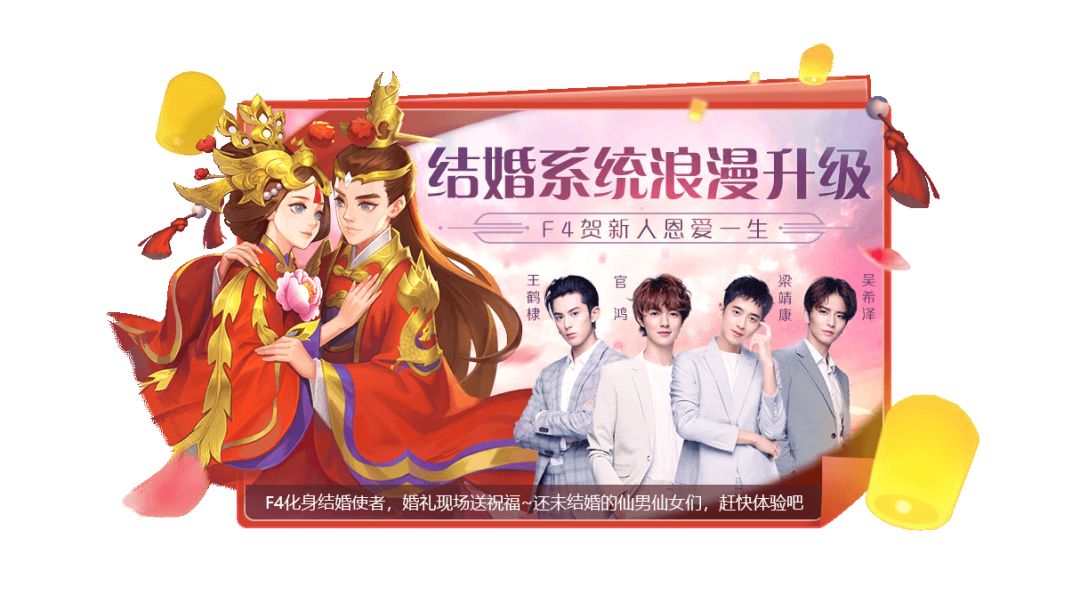 宝宝们!!咱们的结婚系统也全新升级啦!F4亲自到婚礼殿堂当起证婚人~祝福大家的婚姻幸福美满哦~