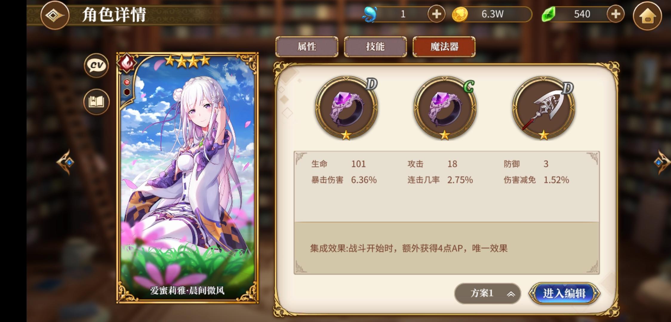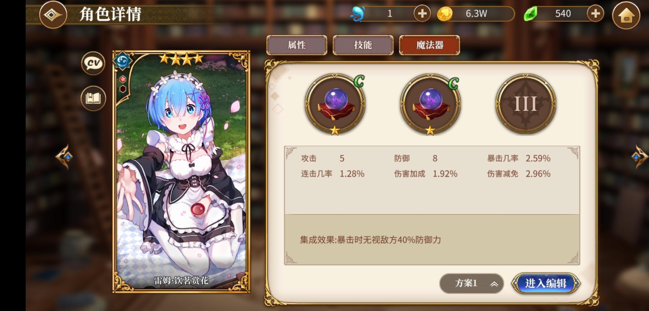 回合开始,涨4点ap,拉姆s技能上debuff,蕾姆ap技能暴击打全体,无视40%防御,打完对面基本就半残了,这时候爱蜜莉雅再补个全体技能,啧啧