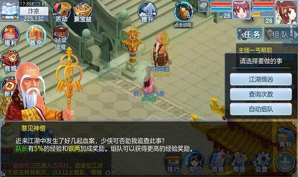 升到30级,还是继续先跑主线任务,开服第一天限制等级是40级,所以,我们前期的剧情可以一直提前就完成它。完成主线剧情任务,我们就能升到34级;这个时候,会有很多活动供我们升级,比如镇魔塔、副本、江洋大盗、生死场等等,对啦,引导任务也不能忘记咯;在汴京的公告栏,我们还能接支线任务,也能获取不菲的奖励。