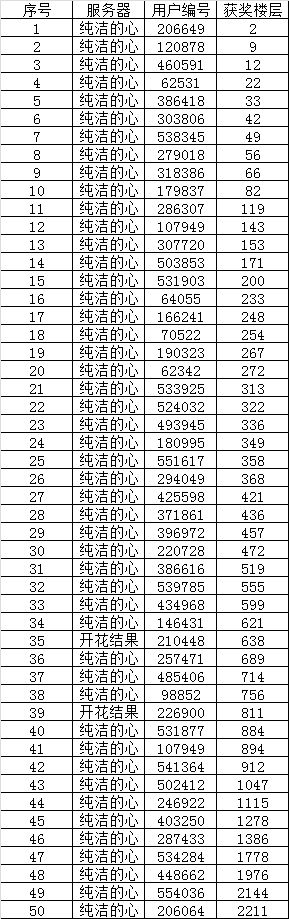 现公布获奖的名单,各位城主看下有没有在其中哟!