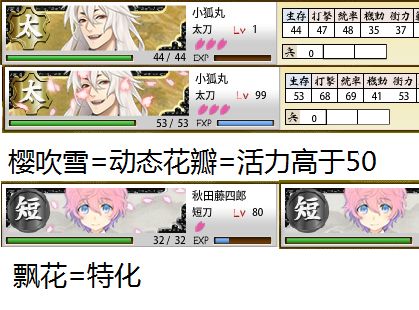关于活力值大家的算法是100是满活力 高于50就会樱吹雪,低于20会黄脸(左下角出现黄色的脸)低于5会红脸(左下角出现红色的脸)。(具体数值有些记不得,有错误请提出)
