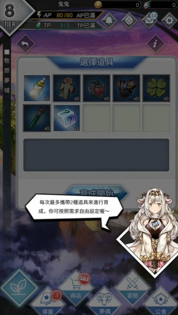 由于是教学的关系,「梅依」会教玩家中断梦域直接结束育成;但是由于进入梦域会消耗1TP,每TP则要耗费4小时才增加1点,我建议往后都直接走完3章节45回合而不强制结束育成。