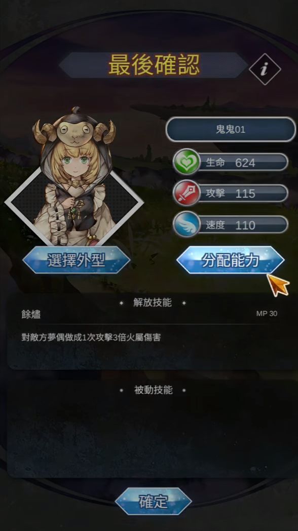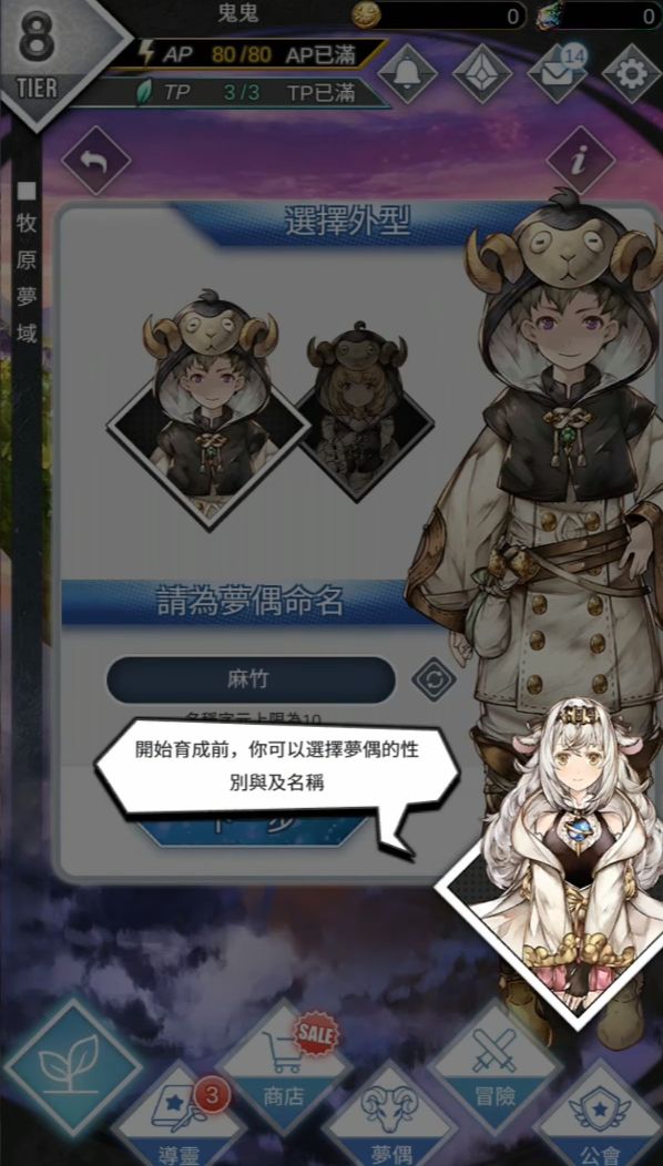 我们根据教学,在「梅依」的指引下将「梦偶」换成「桑安」的外型,然后按下确定即可做成完整的「梦偶」。