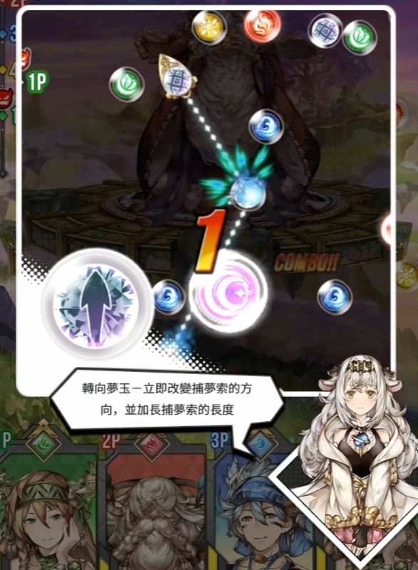 轮到我们的「梦偶」攻击时,我们可以通过在除了卡面区域以外的任何一个地方拉伸拖动发射捕梦索,可以自行调整方向的同时只要我们拉的力度越大则轨迹延长越深入,同时射出来也越强烈。
