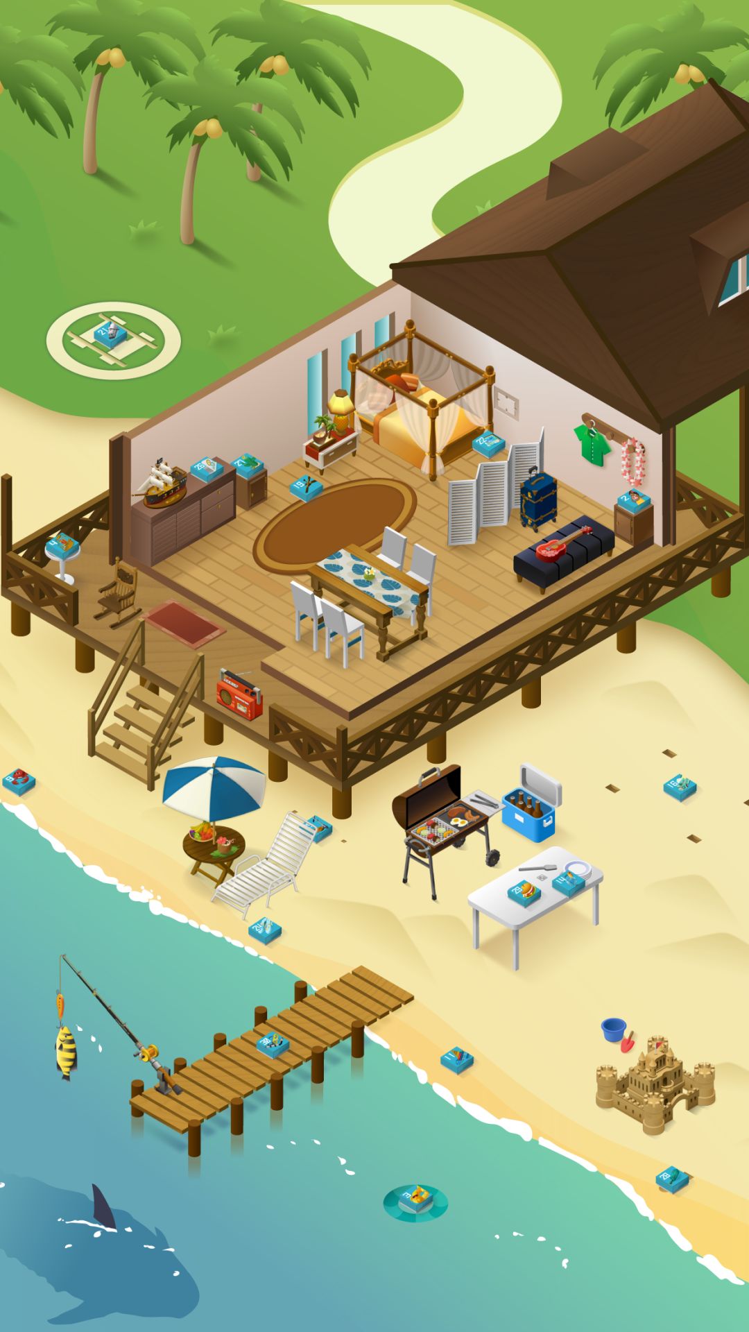 这一次,你可以通过几十个关卡拼接出沙滩上的阳伞与躺椅,充满夏威夷风情的吉他。