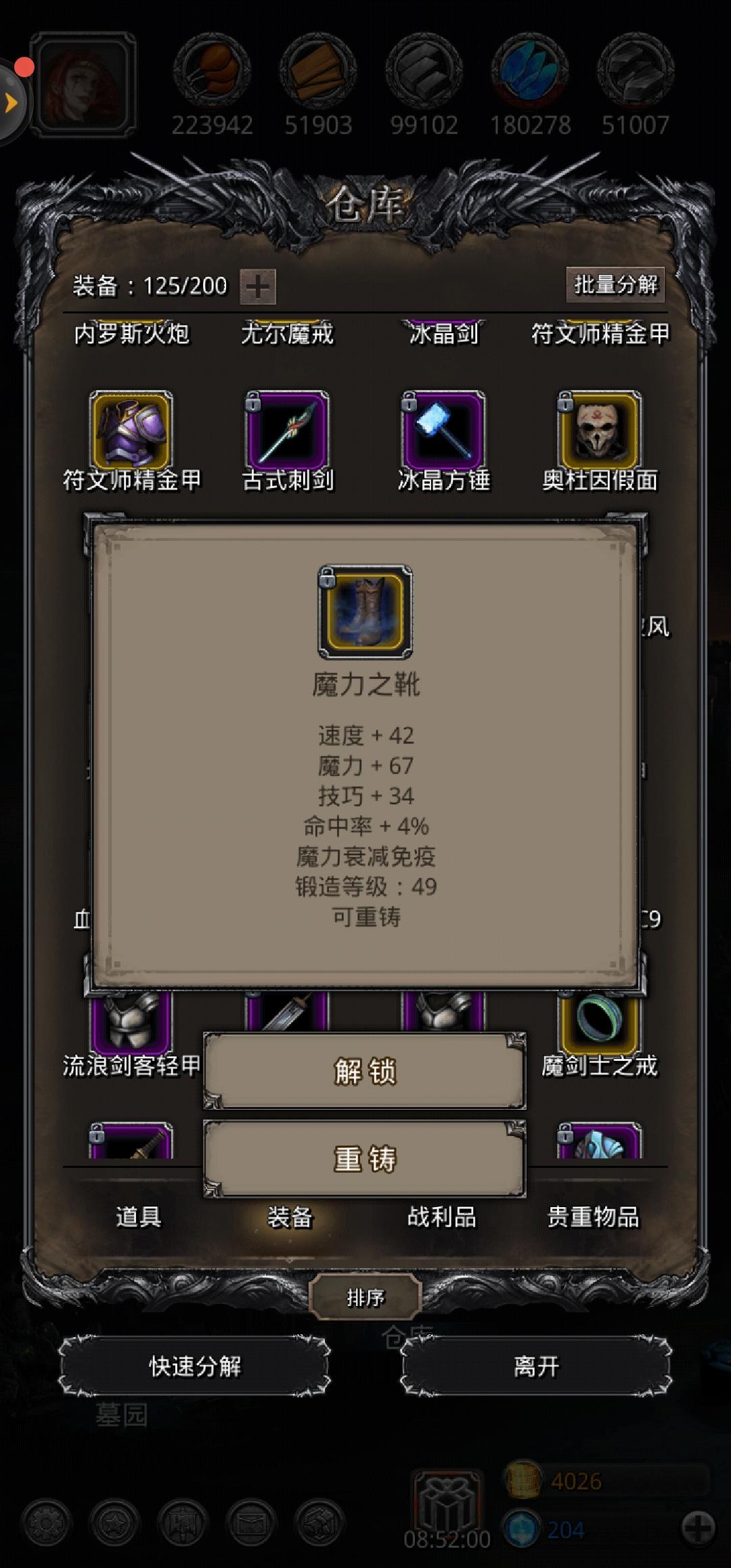 一般刚到图七会卡一会,升升酒馆,升升队伍等级就好了。进图八之前吧商店珍藏里的符文师护甲买了,图八怪物有流血。打图13之前去图11找矮人拿头盔图纸。