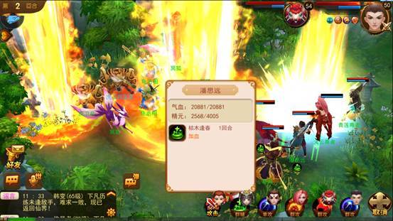 长按目标模型,可以看到该目标身上的buff,己方成员还可看到气血、精元的数值,敌方成员需要使用照妖镜才可查看气血。