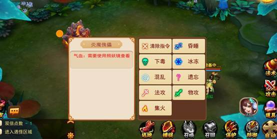 在战斗中点击战斗指令界面中的“捕捉”按钮,点击希望捕捉的怪物,在下一回合将对目标怪物进行捕捉操作。根据目标当前血量不同,捕捉成功的几率也不同。