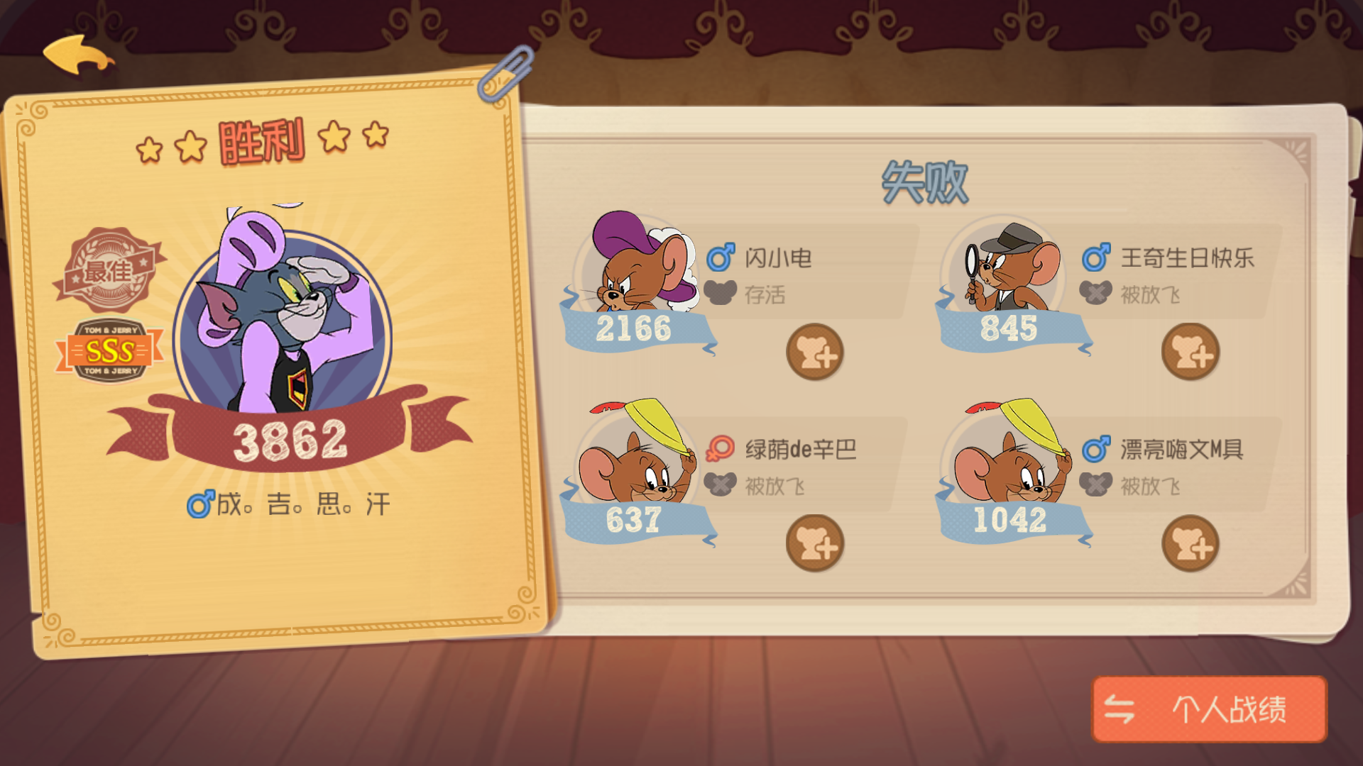 两个罗宾s皮,从皮肤上他们就得死。开局隐身+一个灰花瓶,去找老鼠。2s那个发现了我,被我预判花瓶打到,一刀杀了绑上🚀。中国好队友剑杰看见队友上🚀连无畏都忘带了就来救人。剑杰非常急,因为他都忘了骗刀。然后的事你们都想的到,2s罗宾全程只推了奶酪,还没推完,上🚀,几乎秒飞。接下来就是无辜的侦探,一直想放隐身(估计在烤土豆),被飞了,1s罗宾也上🚀,中国好队友助我秒飞。多好的队友,帮我省时间,天梯帮我上分,我都不好意思为他队友打他了。(其实我没看见要秒飞)多好的队友,杰猫与侍卫。