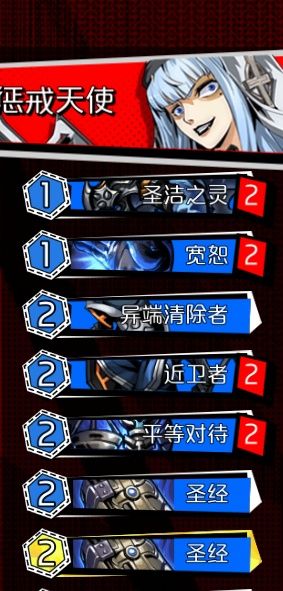 这套神使主要是根据内置卡组“惩戒天使”改的(不得不说内置卡组强度其实都很高),成本上也不会太高,总计三蓝一橙并且都有下位替代卡。强度上我个人胜率还是蛮高的,天梯胜率75%,先手胜率更高一点,而且操作简单,就分享一下当作造福萌新了(刚开的时候满世界找卡组orz)