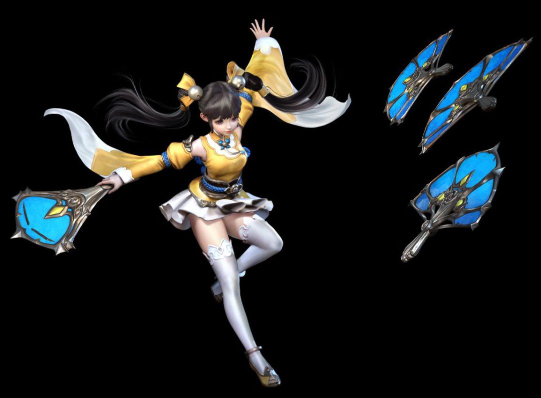 小乔投掷两把火扇,以圆弧路线击退敌方并造成火焰伤害。
