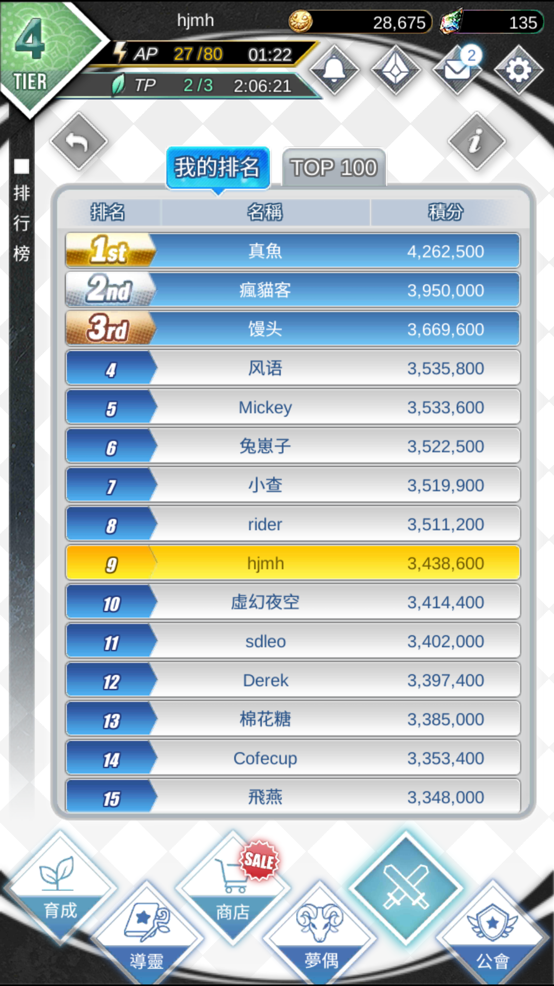 首先贴下我的梦偶队伍和排名和导灵队伍