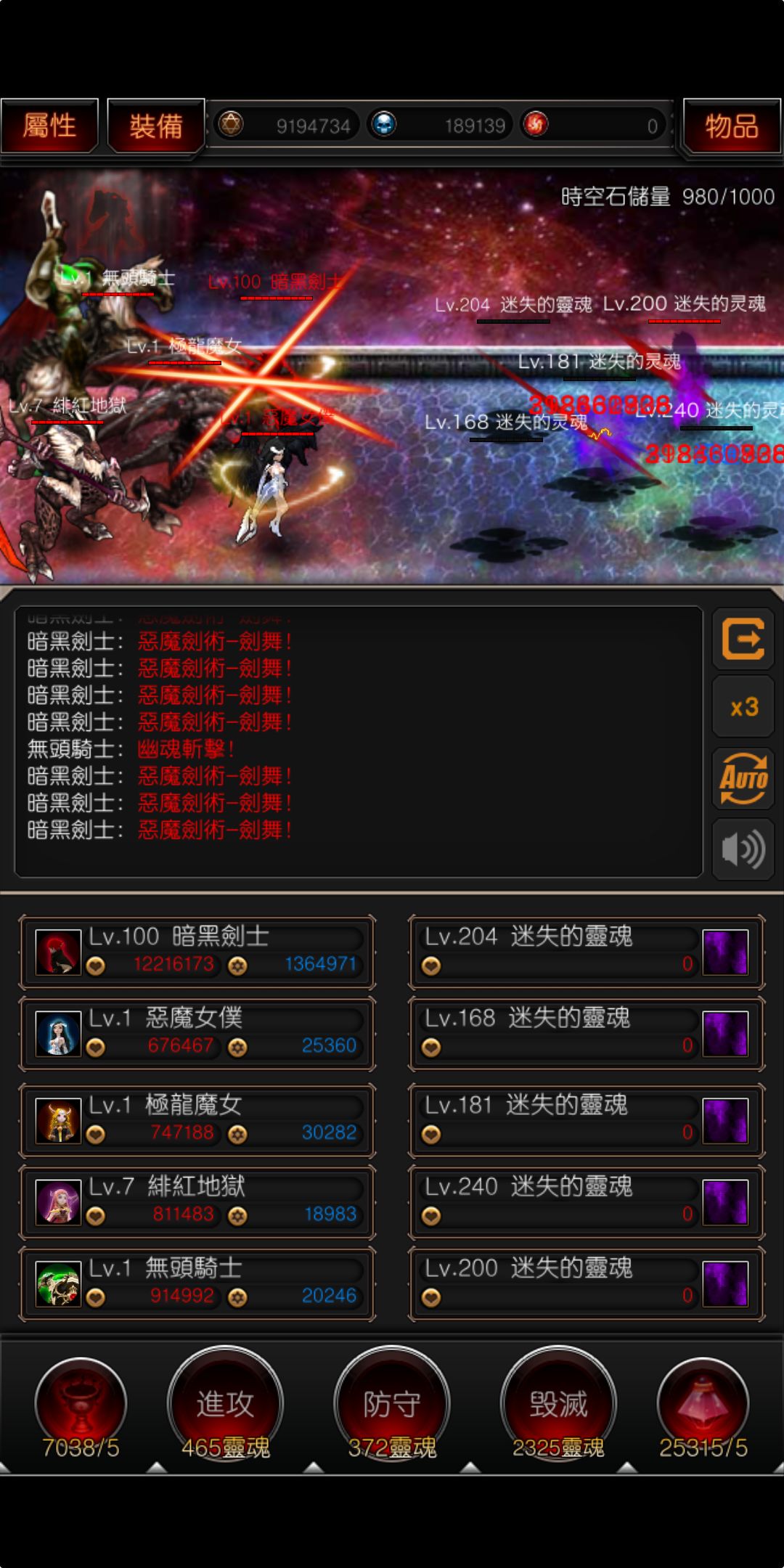 最快中后期,前期的灵魂攒下后,买神器碎片,升级削生命,升满,升削物防升三个最后等级的就行支配者、魂殇、湮灭。这时候战力有100多万,这时候关键来了,再买的神器碎片升物理攻击百分比,瞬间战力800~900多万,这时候刷时空石就是秒杀