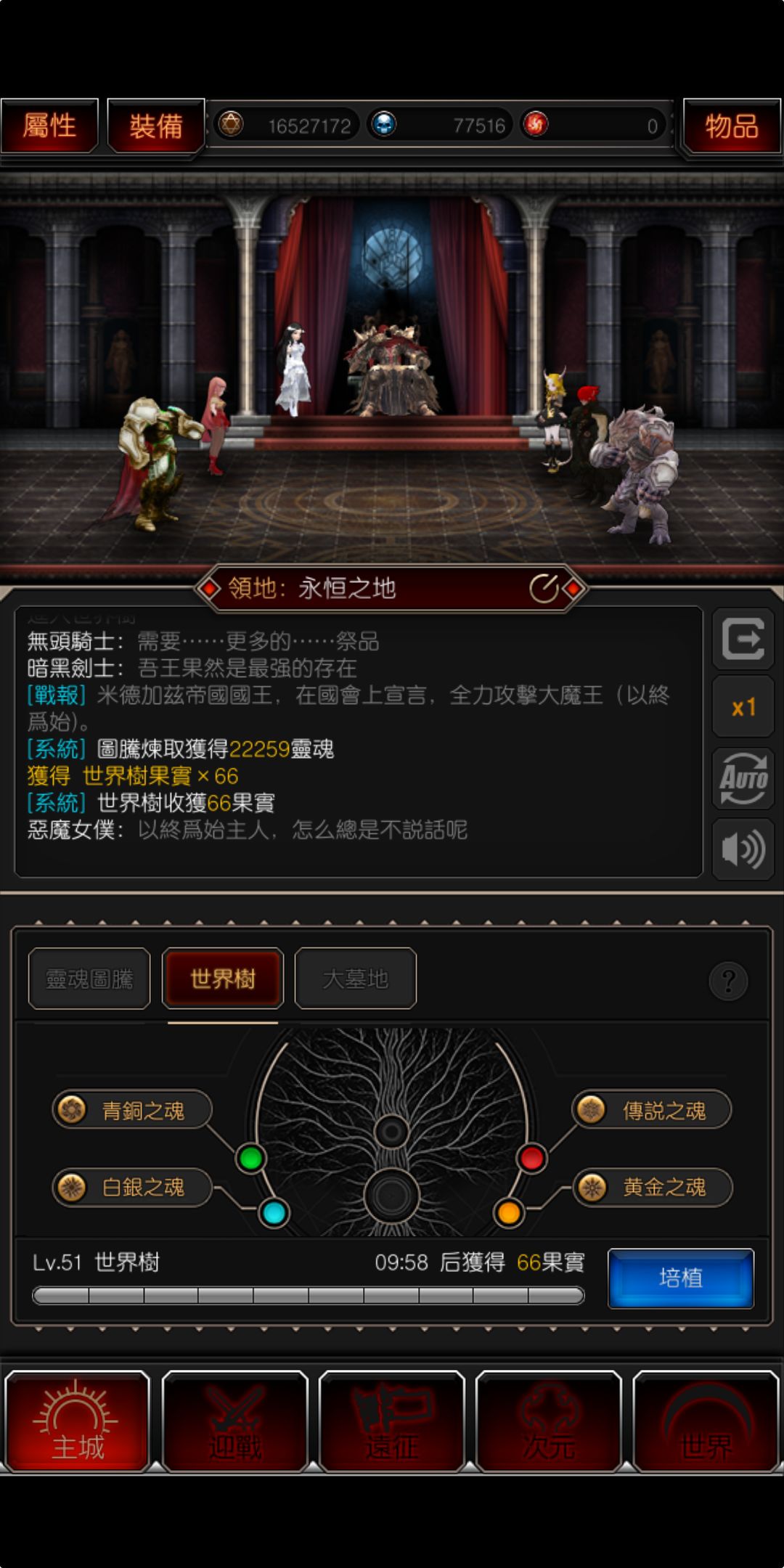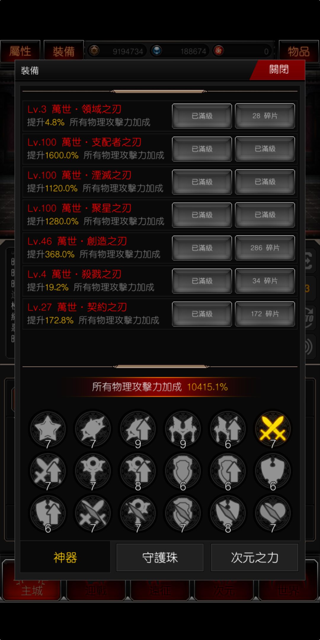 最后看神器缺什么,就主刷几个地图,灵魂图腾保持在2万左右或者更高,多的都升世界树