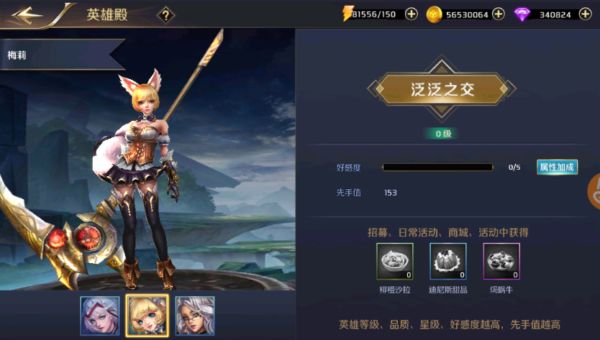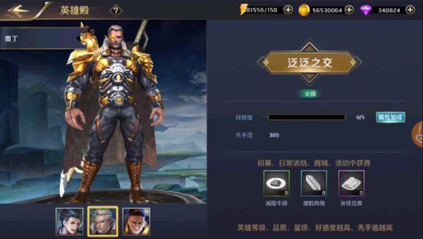 开启英雄殿,点击调查各位英雄,你会发现他们与你的好感度将直接影响到英雄属性的加成。