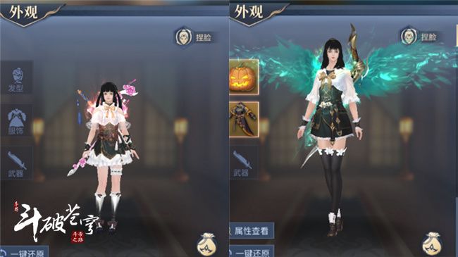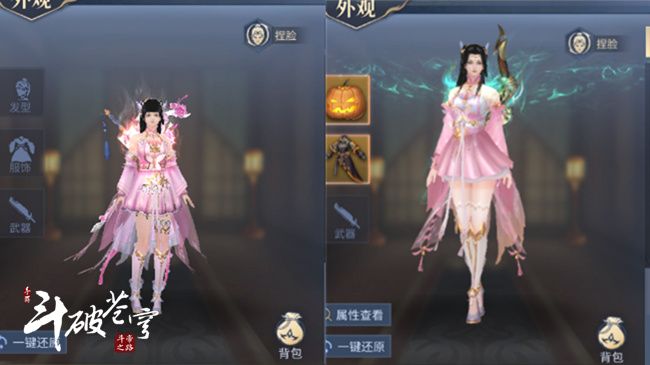 这套衣服是以萧炎和萧薰儿的名字命名的,与这两个人物的模型相同。女性角色装扮与萧薰儿一样,粉色的衣服充分展现出少女的天真烂漫,药族小萝莉则是在裙子部分增加了一些闪光的小配饰,看起来更加的充满童心。