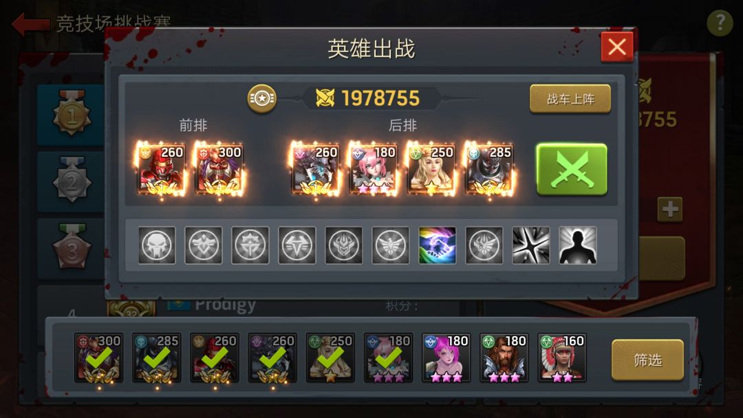 首先是麦克斯,十星后大招必中,吸取敌人攻击,加爆伤,回血一气呵成,被动打击血量最低的敌人,杀敌滚雪球,这就是一个专门为竞技场而生的屠宰机。唯一的缺点是命中,我为了兼顾pve就不管命中了,准备峡谷探险凑500k换那个加70%命中的饰品。这个英雄中前期特别强,因为大家的控制都少,血量偏低,还总有一两个特别弱的可以让麦克斯滚雪球。后期略微疲软,因为血量上来了,控制也多了,被控制就没太多输出了,大家都知道麦克斯强,都会有些针对性布置,比如专克刺杀的骨刺、降命中的蔡斯医生和每个英雄都升高星,而不是先升一两个。