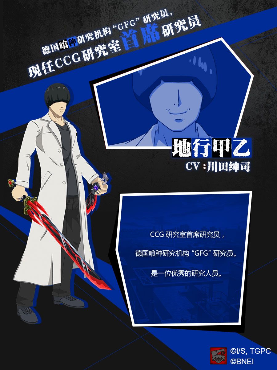 今天要为大家介绍的是德国喰种研究机构“GFG”研究员、现任CCG研究室首席研究员——地行甲乙。这样优秀的研究人员在游戏中又会发挥怎样的实力呢?!