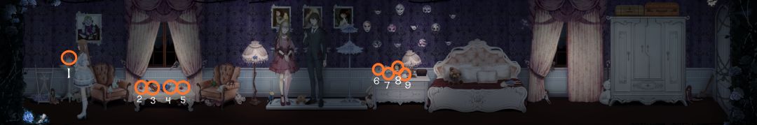 卧室把图上的标记9个位置用锤子砸碎,7号位的花瓶是那个白玫瑰花瓶,一碰就碎,不需要用锤子【我是破坏王1】